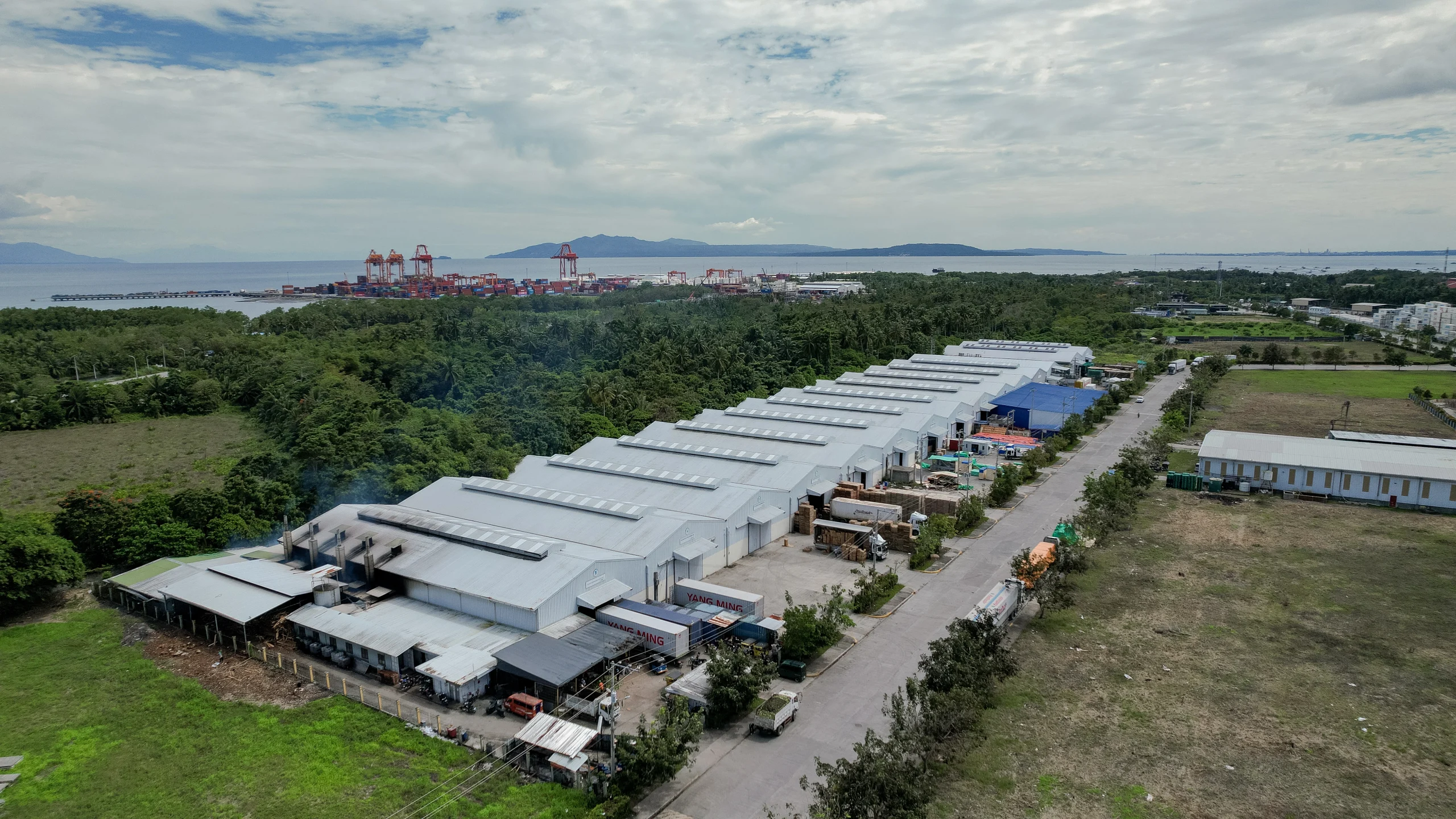 The latest aerial view of Anflo Industrial Estate (AIE), showcasing the completed two out of five development phases of HEAD Sport and the ongoing development of Thai Coconut, one of the estate’s newest global locators. A decade since its establishment, the 63-hectare estate continues to take shape as a premier agro-industrial hub. Visible in the upper left is its close proximity to the Davao International Container Terminal (DICT), with its Empty Container Yard seen at the upper right of the frame.
