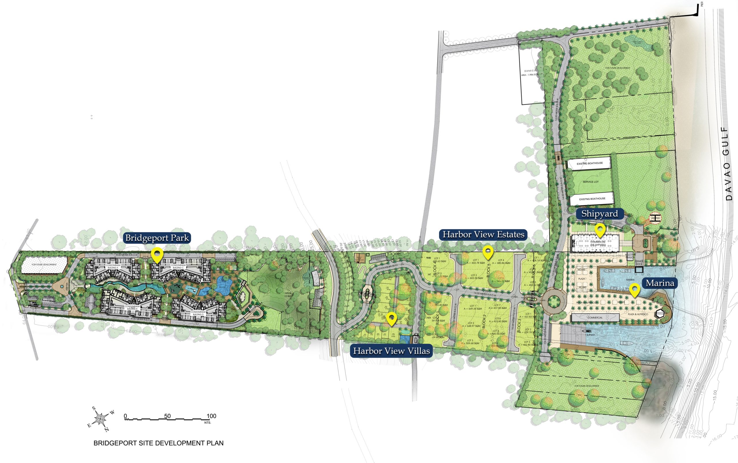 Located in the tranquil Island Garden City of Samal, Bridgeport is a marina harbor lifestyle community on a sprawling 13-hectare property that keeps up with the natural slopes of its location. Inspired by the East Coast Hampton architectural style in the US, this mixed-use development features an upper and mid-level residential area with the best view, and a lower waterfront area that takes advantage of proximity to the marina and future connections of the strait.